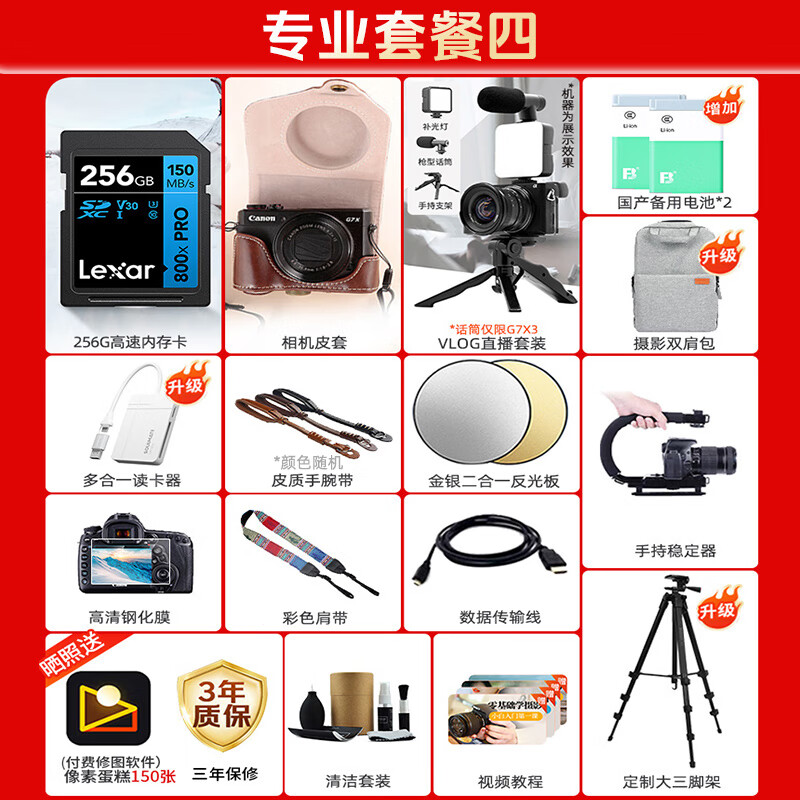 佳能(Canon)g7x2相机 g7x3专业数码相机 vlog视频拍摄网红美拍家用直播4K便携V1卡片机口袋照相机 G7 X Mark II G7X2 黑色 官方标配
