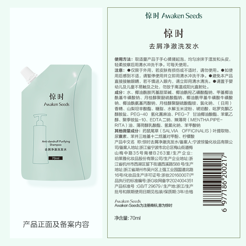 惊时 Awaken Seeds 去屑净澈洗发水便携装70ml