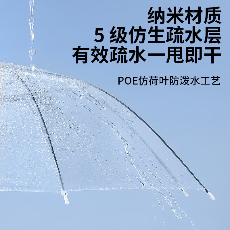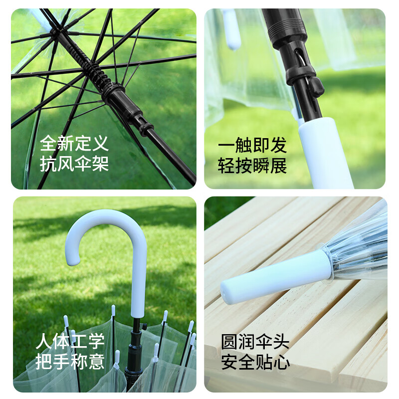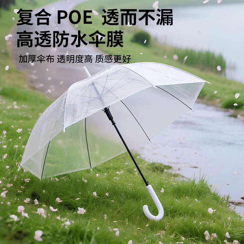 这款雨航(YUHANG)直杆弯柄透明雨伞不仅外形美观,而且功能实用。它的透明设计使您在使用时可以清楚看到内部结构和保养状况。弯柄设计更加符合人体工程学原理,让您在撑伞行走时更加舒适。
