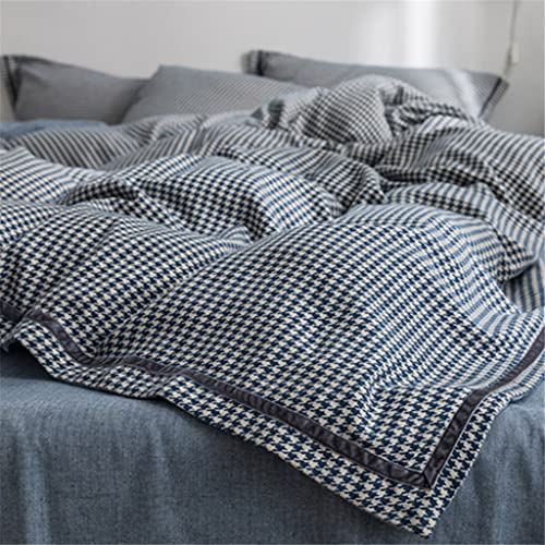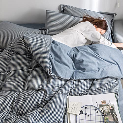 Four-Piece Cotton Brushed Autumn and Winter Plaid Duvet Cover (Blue)