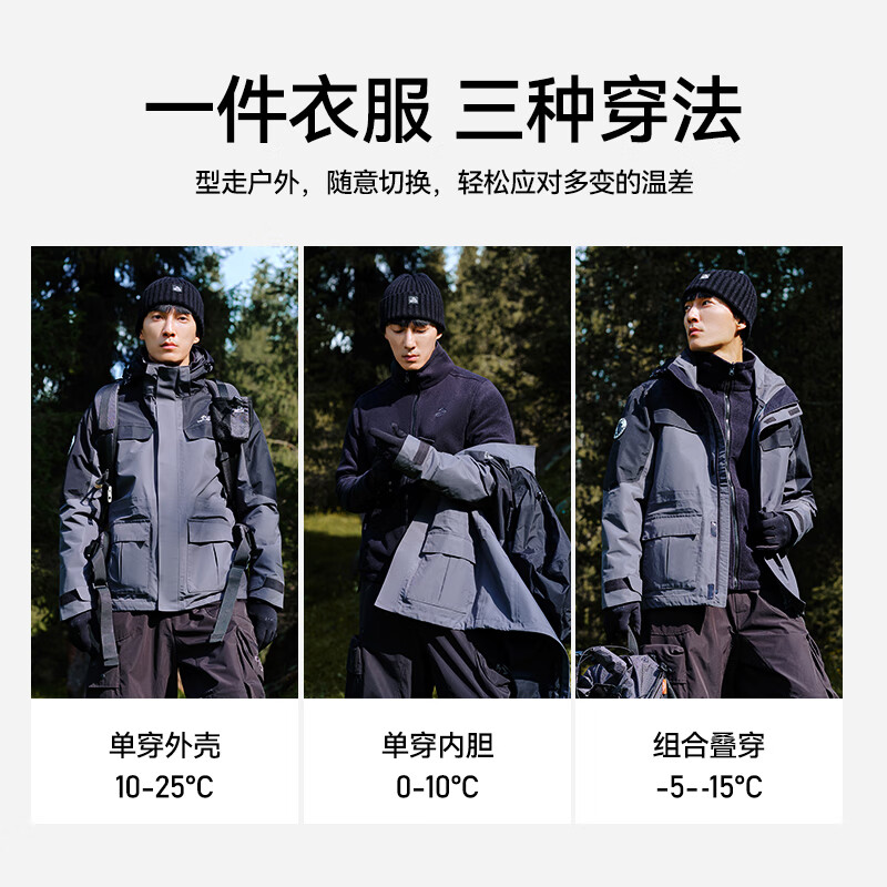1. 三合一设计:这款冲锋衣创新地采用了三合一结构,可以灵活应对不同天气环境的变化,满足你对多功能性的需求。