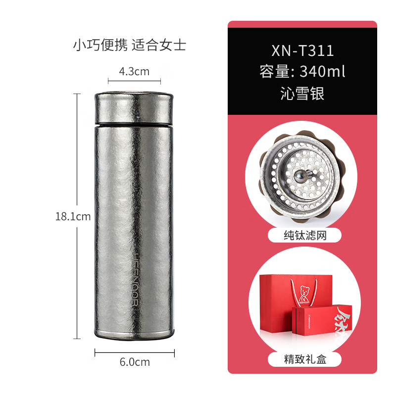 希诺HEENOOR XN-T311沁雪银款保温杯,以其精湛的工艺和卓越的功能,成为商务人士的理想选择。这款钛材质的水杯不仅具备强大的保温保冷能力,还能轻松过滤茶叶中的杂质,让您在忙碌的工作之余享受到完美的茶香。
