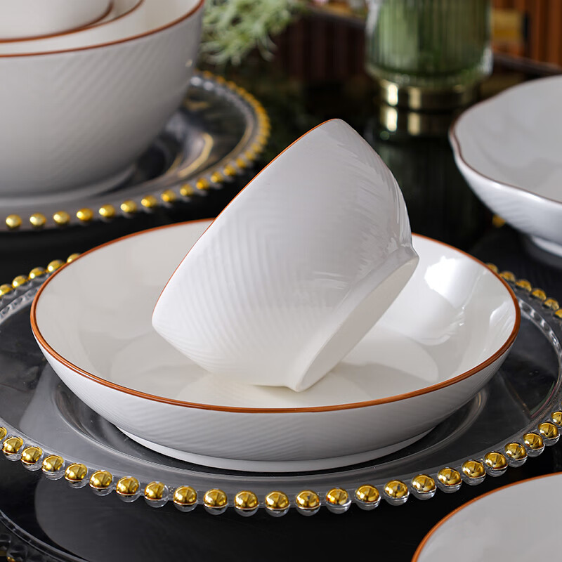 洁雅杰陶瓷碗碟套装碗家用2024新款高温釉下彩纯白餐具