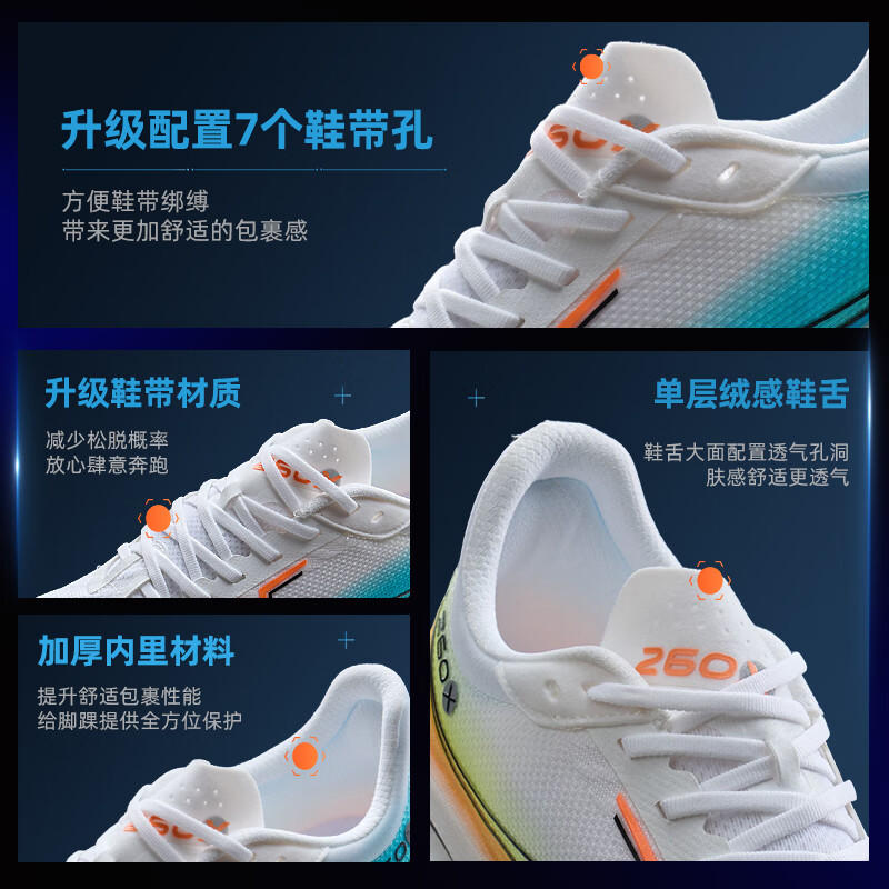 - 优惠价格:目前这款特步【260X】赛训兼备跑步鞋男马拉松鞋透气轻盈缓震集训轻盈运动鞋女 经典白/智能蓝/高光橙的最终购买价为339元,性价比非常高。