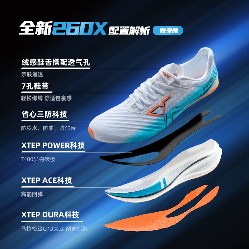 特步【260X】赛训兼备跑步鞋,超值优惠仅售339元