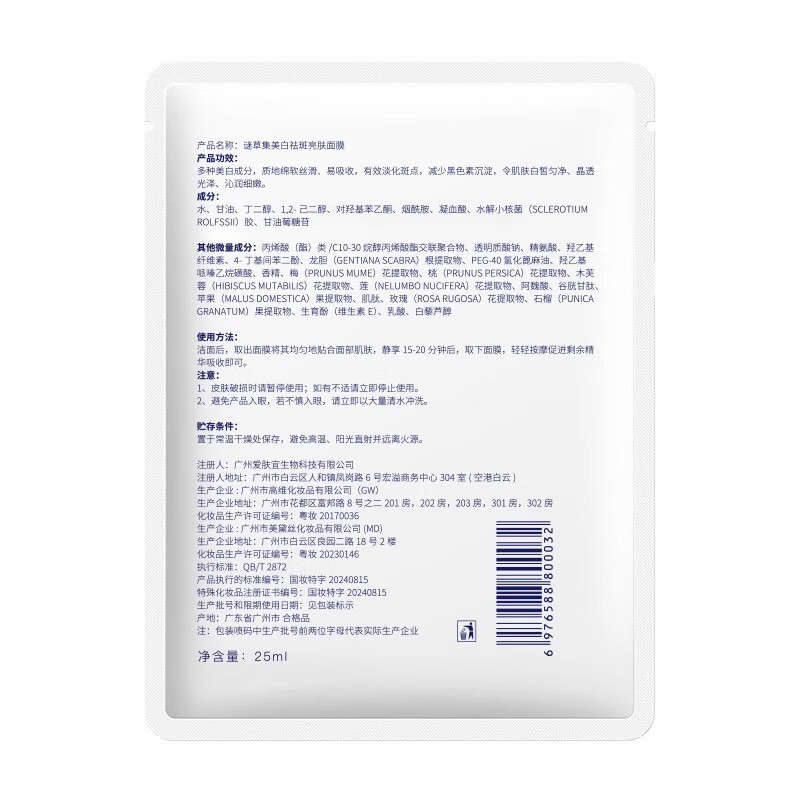 谜草集面膜是一款专为肌肤美白、提亮肤色而设计的产品。它含有烟酰胺成分,能够有效淡化黑色素,帮助改善色斑和痘痘留下的痕迹。
