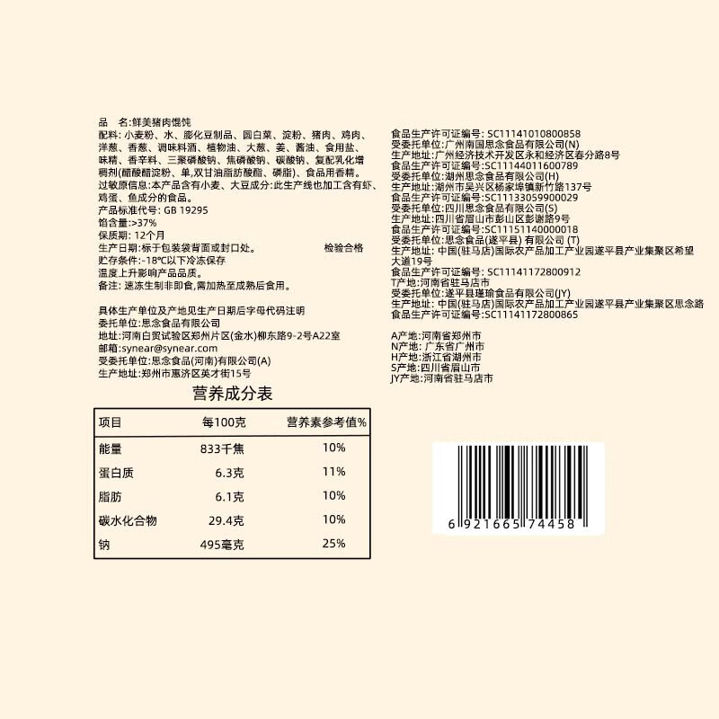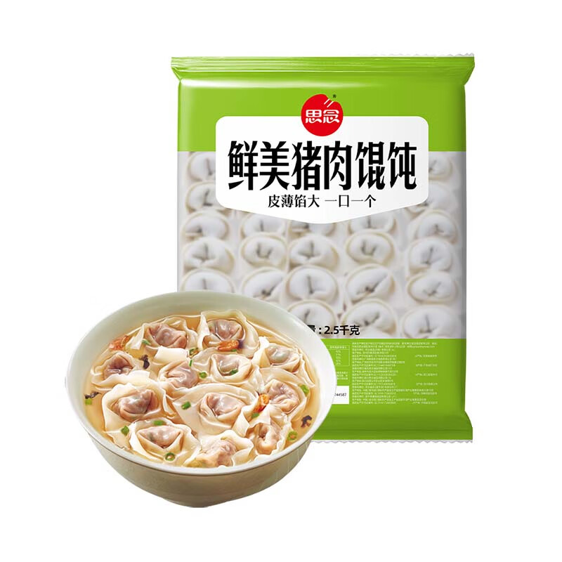 - 产品名称:思念鲜美猪肉馄饨2.5kg,约有277个(根据重量估算)