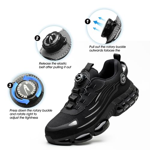 Gugifcto’s Safety Shoes are designed for durability and comfort, featuring advanced anti-puncture technology to keep your feet safe from sharp objects. These lightweight yet sturdy work boots come in a sleek black color and offer excellent protection against various workplace hazards.