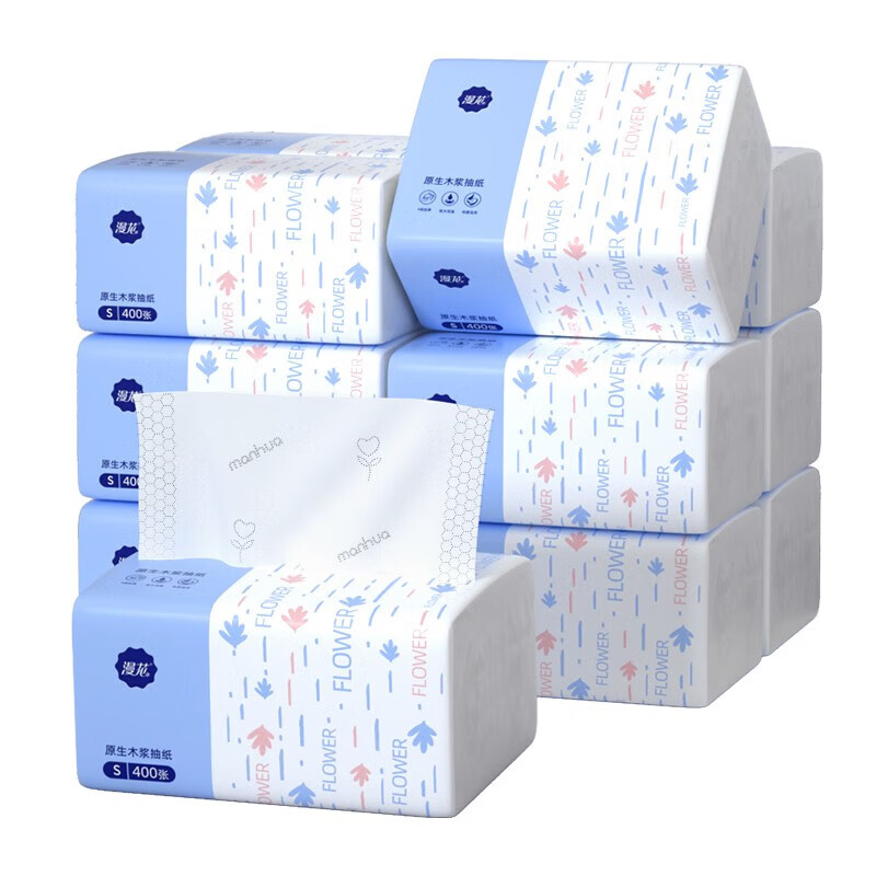 产品名称: 漫花抽纸面巾纸餐巾纸400张5层加厚纸巾家庭装擦手纸卫生纸原木纸抽