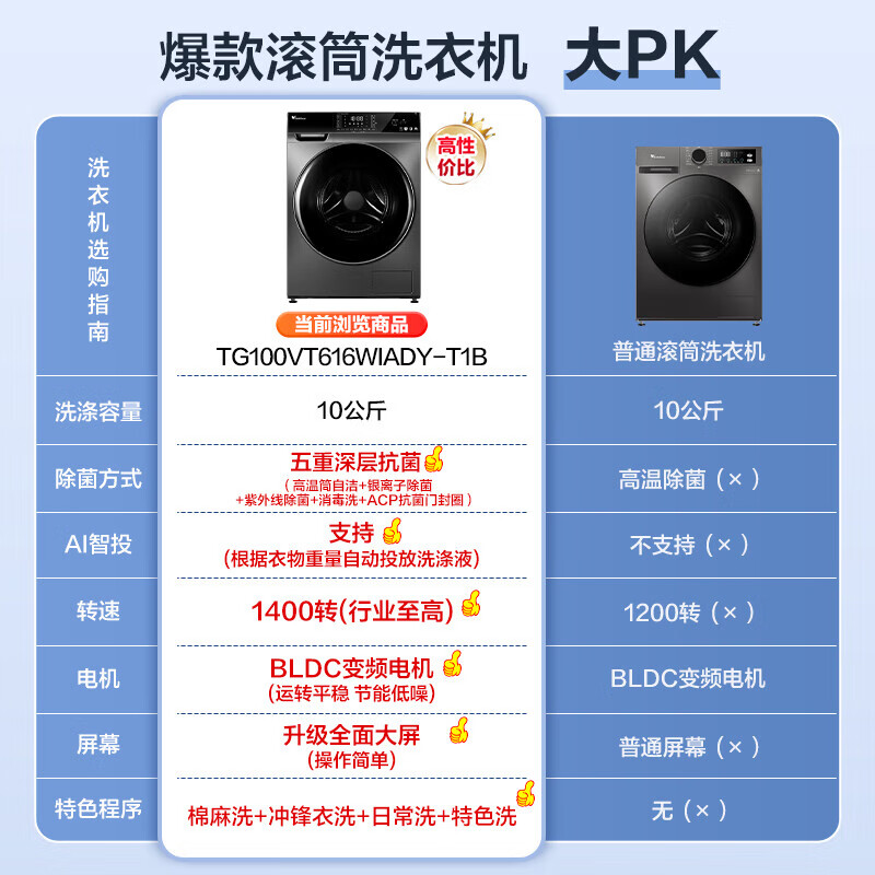 - 超大容量:10KG的大容量设计,满足家庭日常洗衣需求;