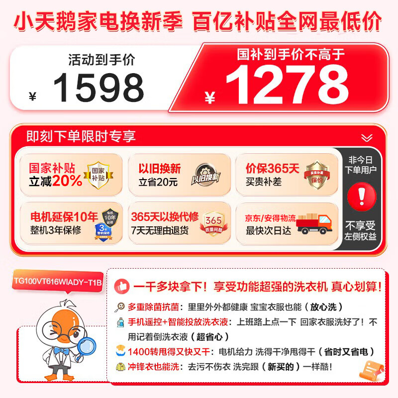 根据京东用户的反馈,本款洗衣机的用户满意度高达 99%(共2000条好评),其高效、便捷的设计得到了广大消费者的喜爱。如果您正在寻找一款高品质且功能齐全的洗衣设备,请不要错过这次机会!