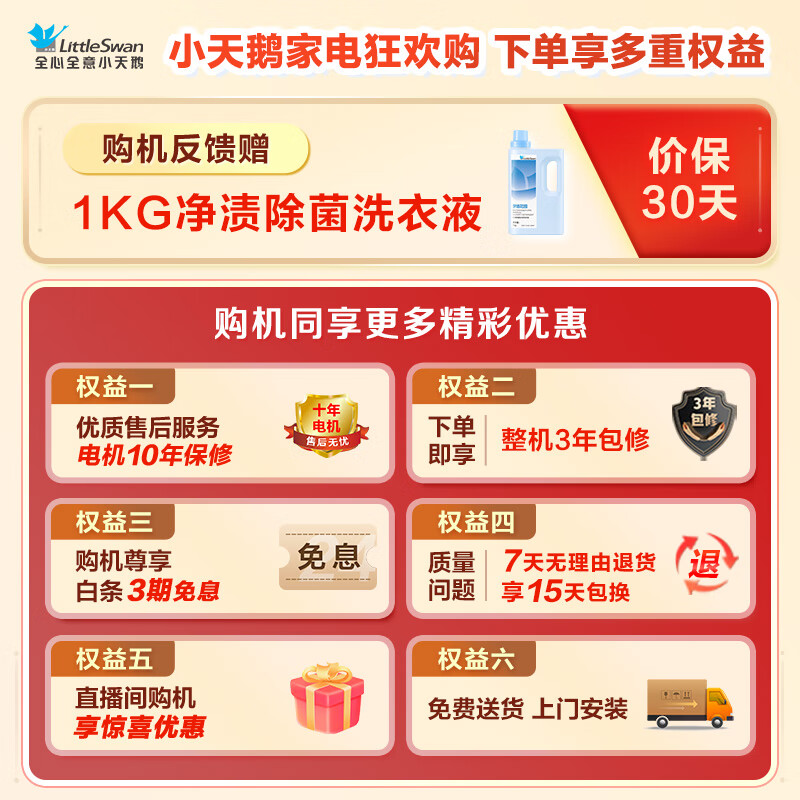 - 容量大:8公斤的超大容量能满足全家人的洗衣需求。