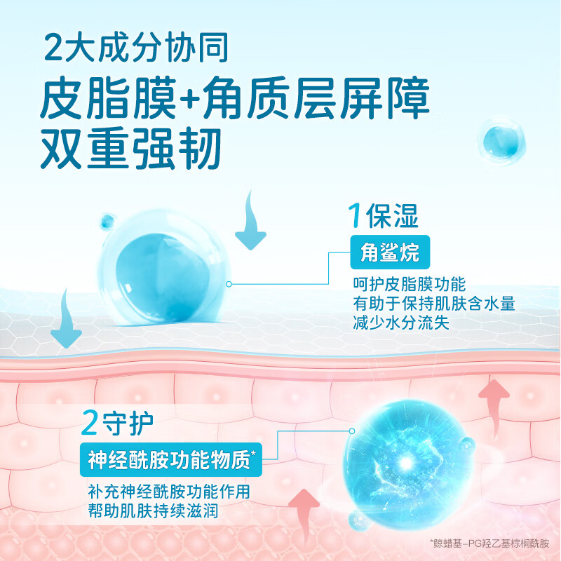 - 舒缓修复:神经酰胺成分有助于肌肤屏障恢复,减少外界刺激。