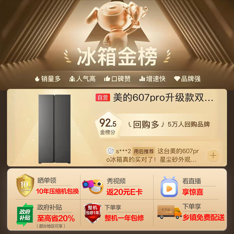 美的607PRO升级版双开门大容量冰箱 – 超值推荐