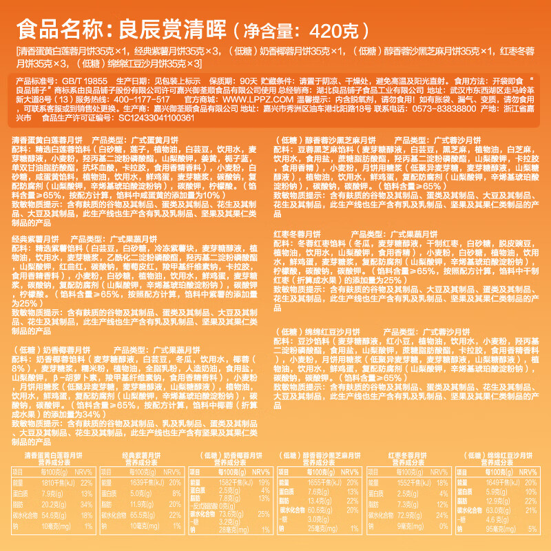 【产品名称】:良品铺子良辰赏清辉 420g 经典月饼礼盒