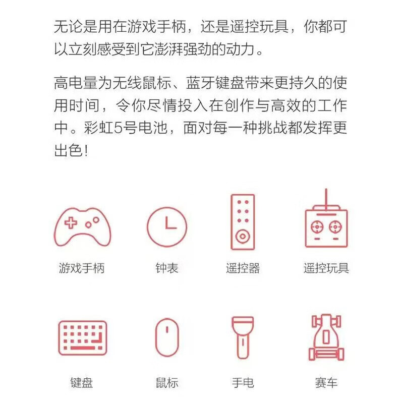 这款彩虹牌无汞环保碱性电池7号型号,专为遥控器、玩具、血压计、血糖仪等电子设备设计。特别推荐给需要长期使用电池的家庭和办公场所。