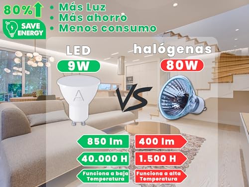 ALUMAR’s GU10 LED bulbs are an excellent choice for anyone seeking energy-efficient lighting options that provide both brightness and economic savings. These 9W LED bulbs offer the light equivalent of a traditional 80W bulb, making them ideal for those looking to reduce their electricity bills.