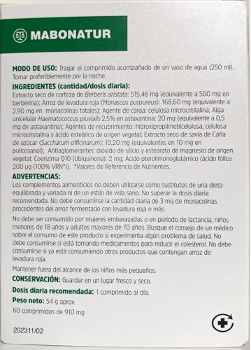 - Natural Ingredients: Contains Berberis aristata e.s, red rice, policosanol, coenzyme Q10, astaxanthin, and folic acid.