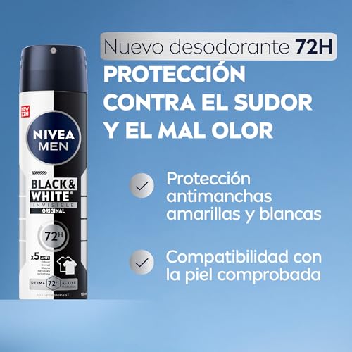 NIVEA MEN’s Black & White Invisible Original Spray offers robust protection for up to 72 hours, ensuring you stay fresh all day long.