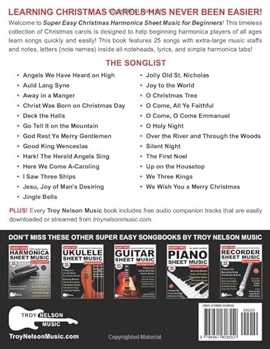 This sheet music book is ideal for beginners who want to start learning the harmonica and play popular Christmas songs.