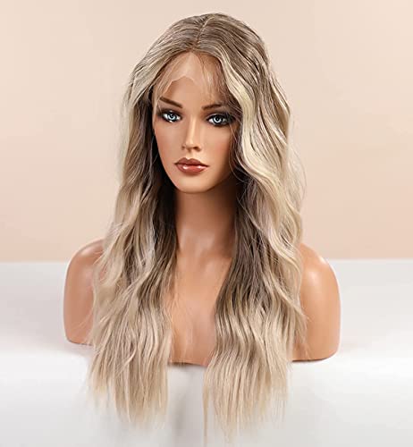 VEBONNY Brown Ombre Blonde Lace Front Wigs for Women