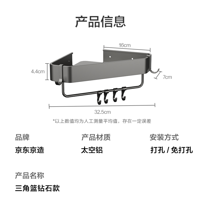 这款京东京造的反重力Pro太空铝三角篮,以其独特的设计和高质量材料受到广泛好评。它采用了加厚加大结构,并且免打孔安装方式更加简便快捷,非常适合于浴室或卫生间空间有限的情况。