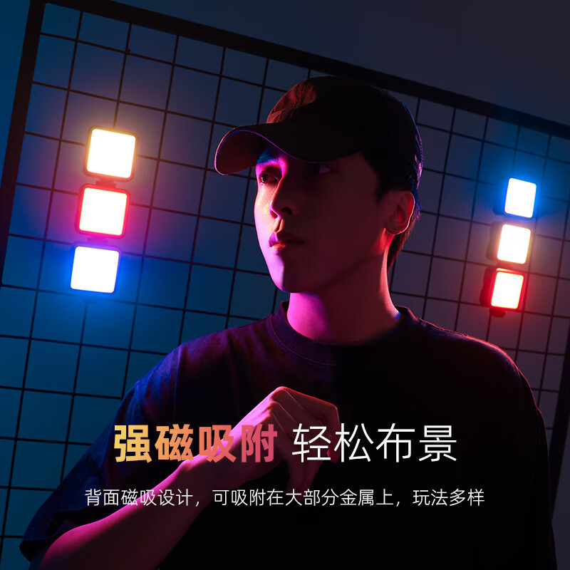 - 磁力吸附设计:这款VL49RGB LED补光灯具有强大的磁铁,可以轻松固定在金属表面上,并且夹子的设计适合于手机、相机等多种设备上使用。