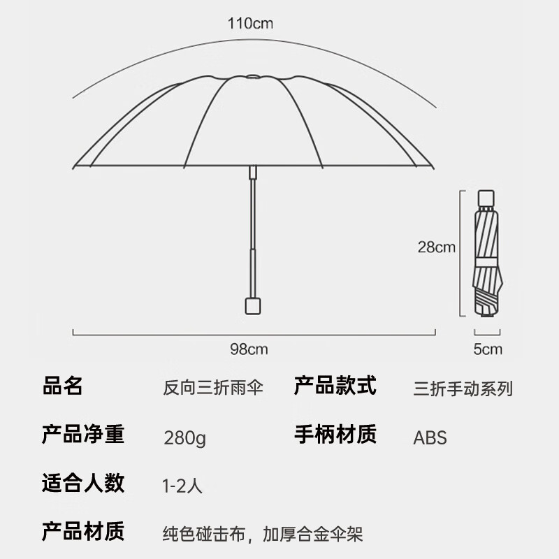 - 加大尺寸设计:加大的伞面,有效遮挡更多风雨,让出行更加舒适。