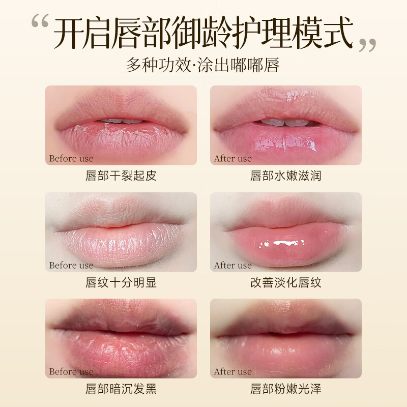 - 淡化唇纹: 持续使用可帮助减少细纹和皱纹,让嘴唇看起来更加年轻饱满。