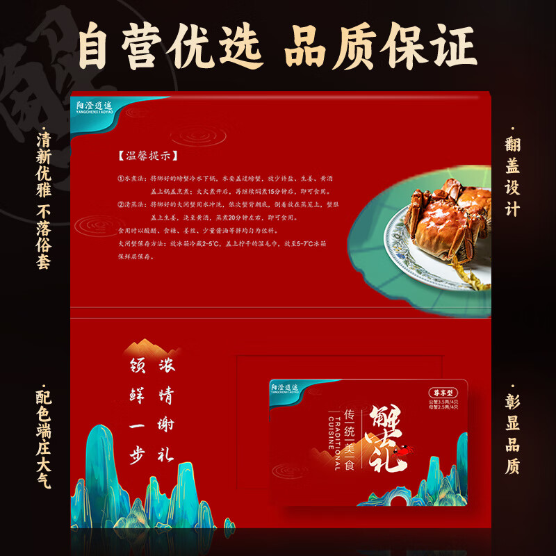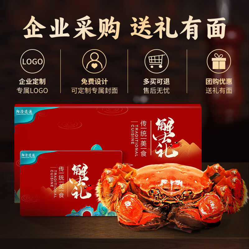 - 公蟹4.5两、母蟹3.5两各四只,共计八只大闸蟹礼券