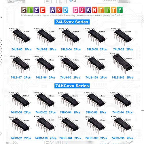 - Wide Variety: Includes 40 pieces from both 74LSxxx and 74HCxxx series logic chips.