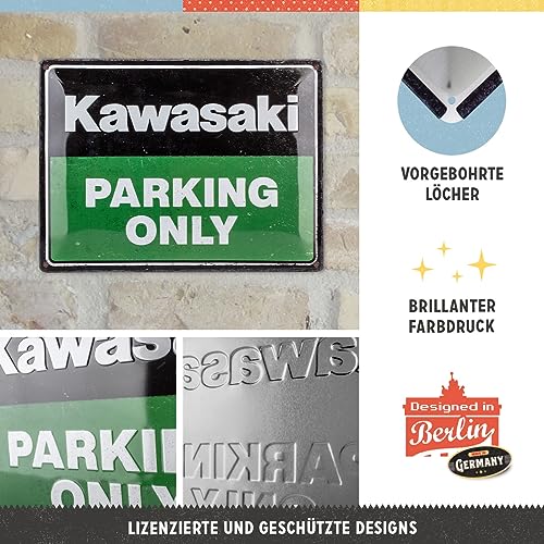 Nostalgic-Art’s Kawasaki retro metal sign is a standout choice for any fan of vintage motorcycles or collectibles, offering a high-quality and durable decorative piece that fits perfectly in your home decor.
