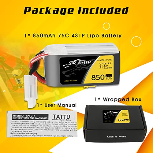 Tattu’s Lipo 4S 850mAh Battery is a high-performance option designed specifically for RC drone enthusiasts seeking power and reliability. This battery offers excellent voltage stability and fast discharge rates, making it ideal for FPV racing drones.