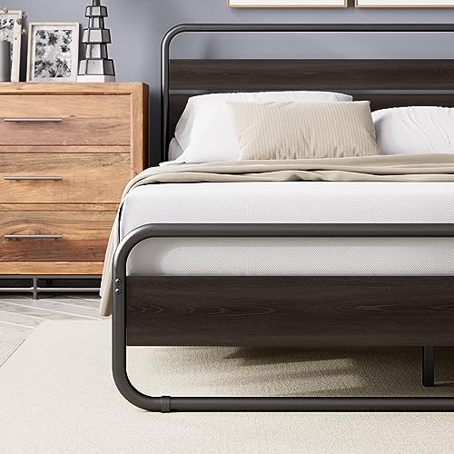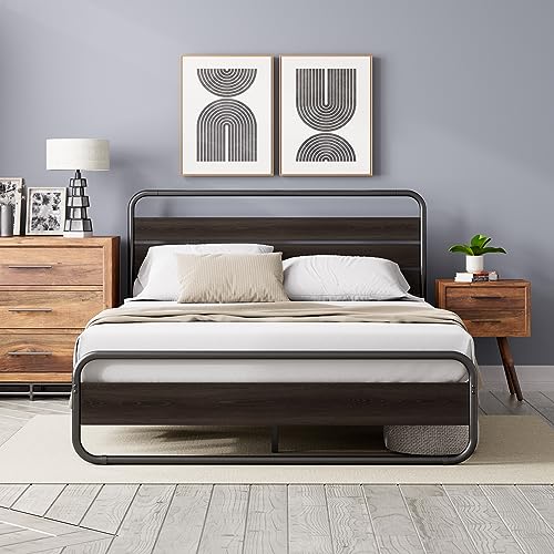 - MODERNICE SU DORMITORIO: With a striking combination of rounded steel and richly finished wood accents in brown or black, this modern platform bed offers unique style and reliable craftsmanship.