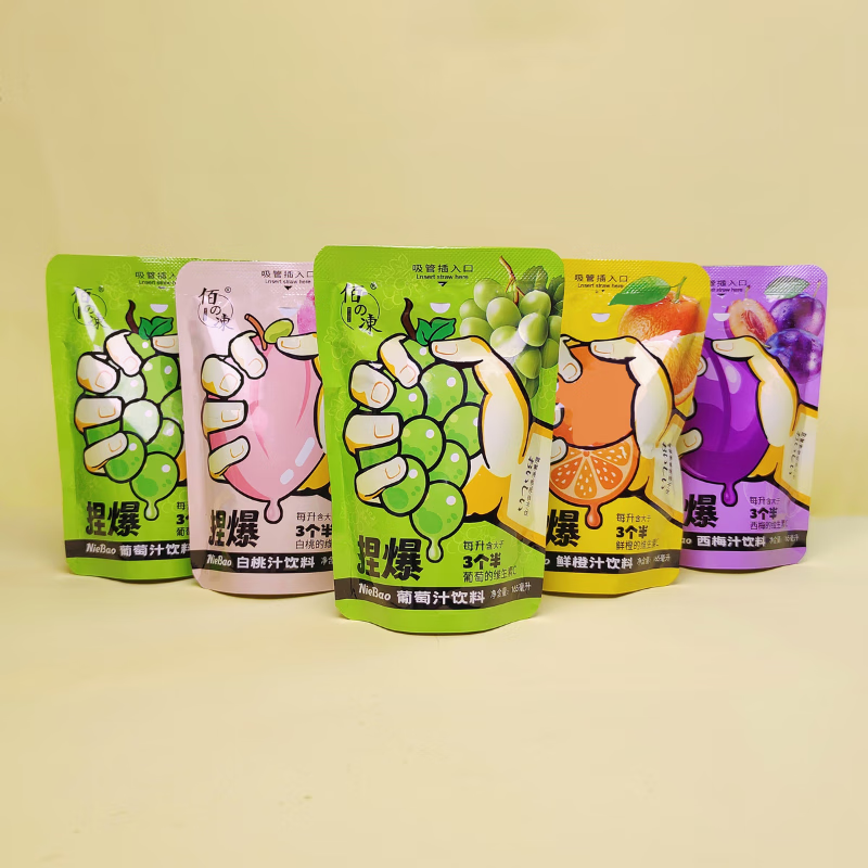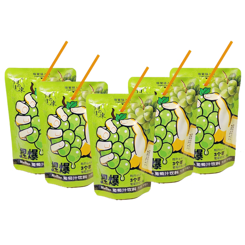 【捏爆葡萄汁】不仅口味独特、口感清新,还非常方便携带和享用。其小巧可爱的设计更是为它加分不少,无论是户外活动还是宅家小憩都十分合适。同时,该产品的包装也采用了环保材料,更加符合现代人健康生活的理念。
