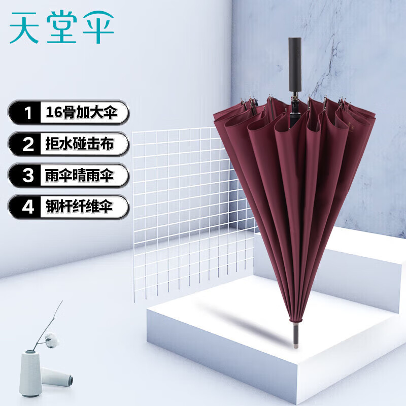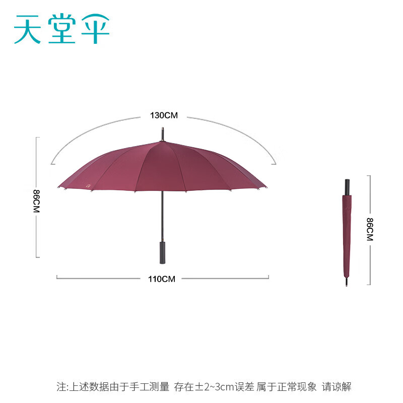 - 加大款式:这款天堂长柄雨伞采用了65*16骨的设计,使它在大小和稳定性上都有了很大的提升。超大的伞面能够覆盖两个人的面积,非常适合户外使用。
