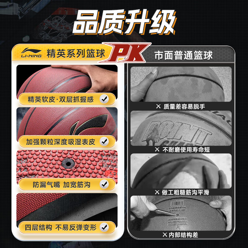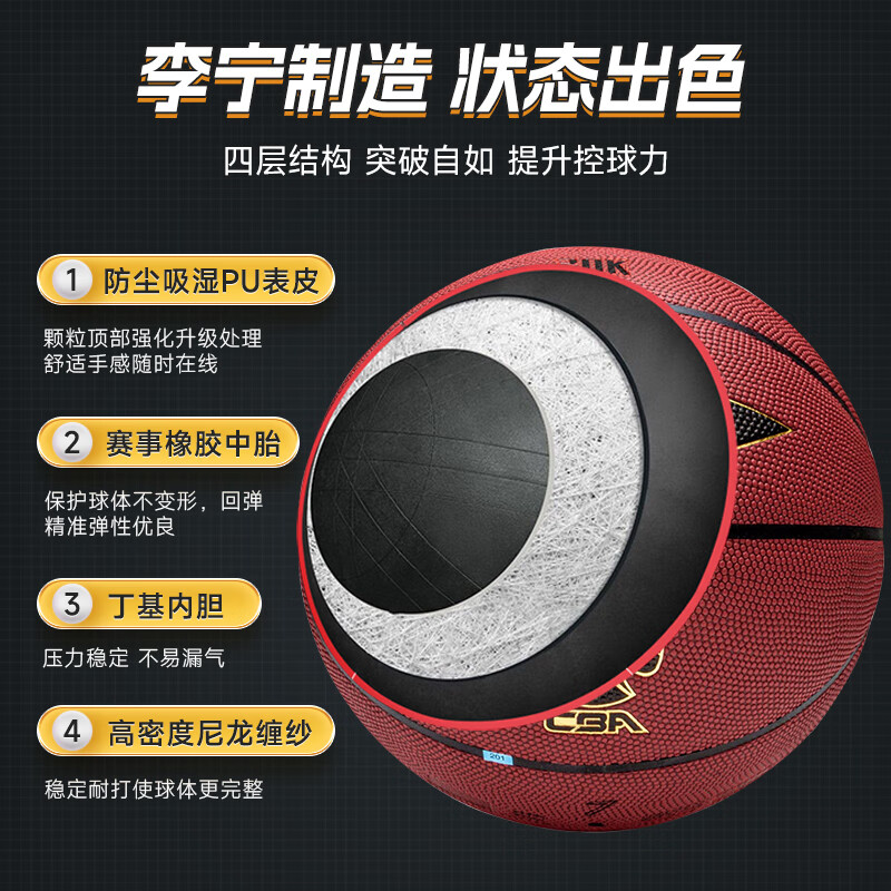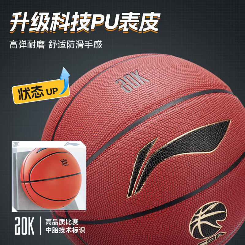 李宁专业篮球957防尘耐磨吸湿PU材质比赛球