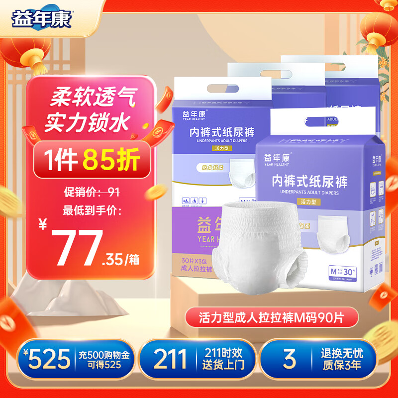 益年康活力型成人拉拉裤M码90片 – 中号(优惠价139元)
