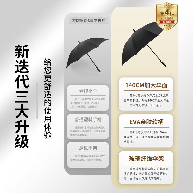 - 加大尺寸:超大的雨伞覆盖面积让您即使带着背包或者帽子都能轻松撑伞行走,适合需要较大遮挡空间的人群。