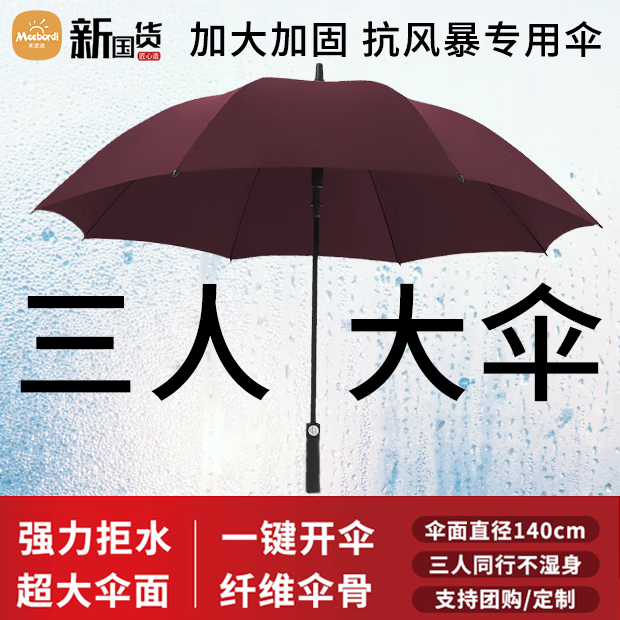 米波迪(Meebordi)雨伞加大长柄超大8骨双人商务半自动红伞