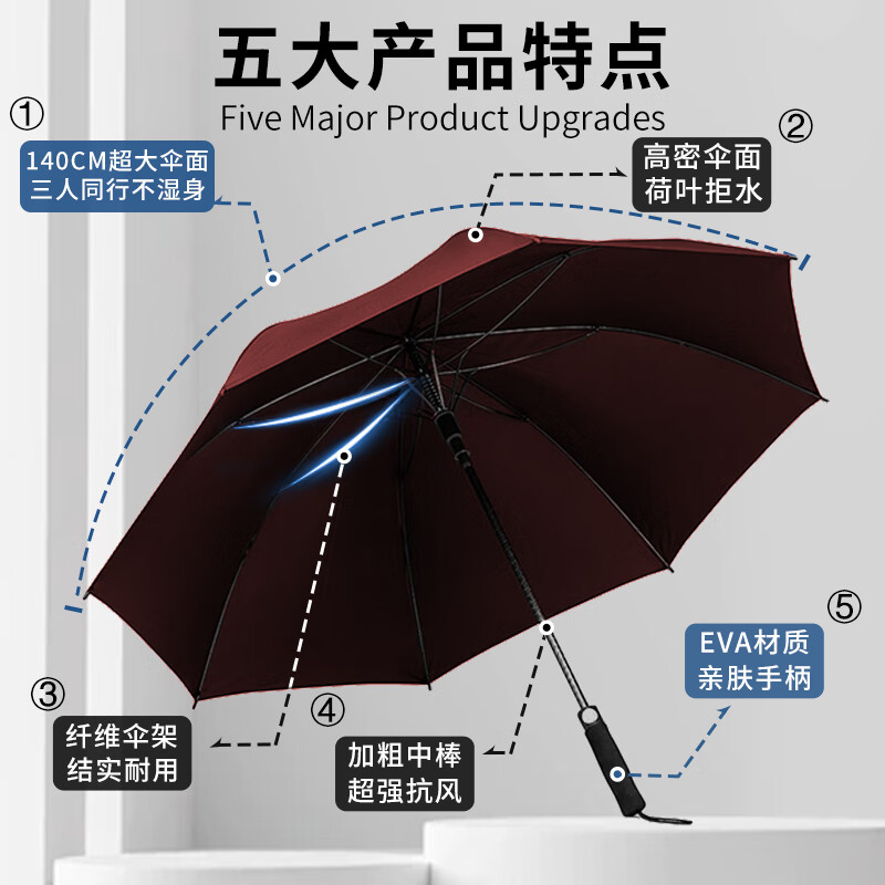 - 商务设计:长柄和简约外观的设计使得这款雨伞非常适合商务人士使用,在商务场合中不失为一件得体的配饰。