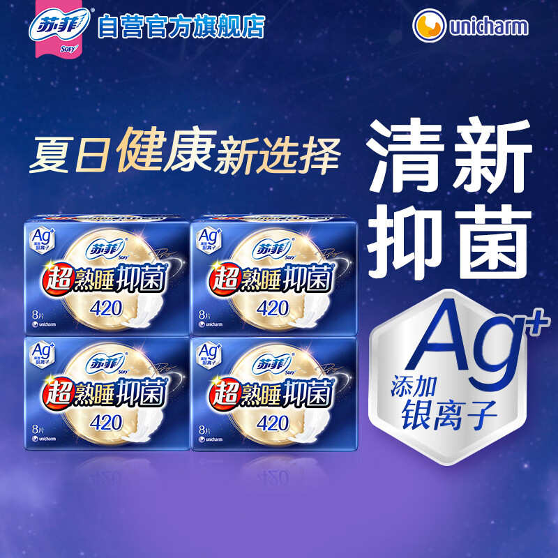 产品名称: 苏菲【王曼昱实力同款】超熟睡清新抑菌Ag+夜用卫生巾42cm32片姨妈巾