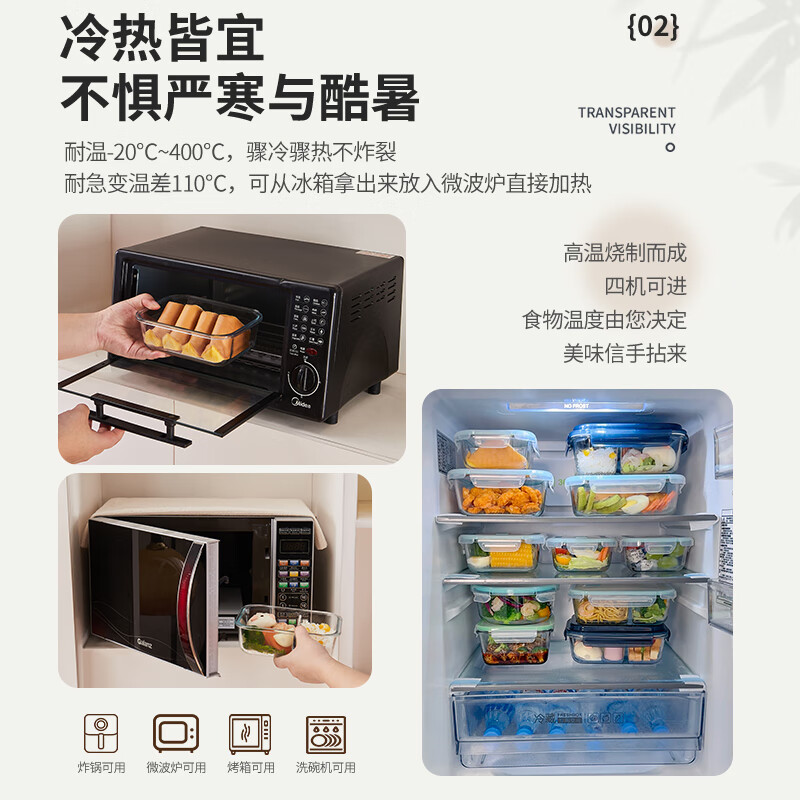- 安全加热:适用于微波炉和冰箱,满足不同场合下的需求。透气孔设计在加热时能够有效排除蒸汽,保证食物味道的同时防止容器变形。