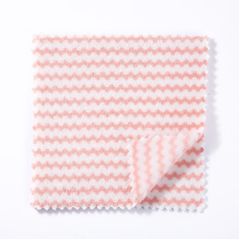 - 珊瑚绒波浪纹设计:这种设计使得茶巾的表面更加美观,同时增加了与桌面或碗筷等物品接触面积,让擦拭效果更好。
