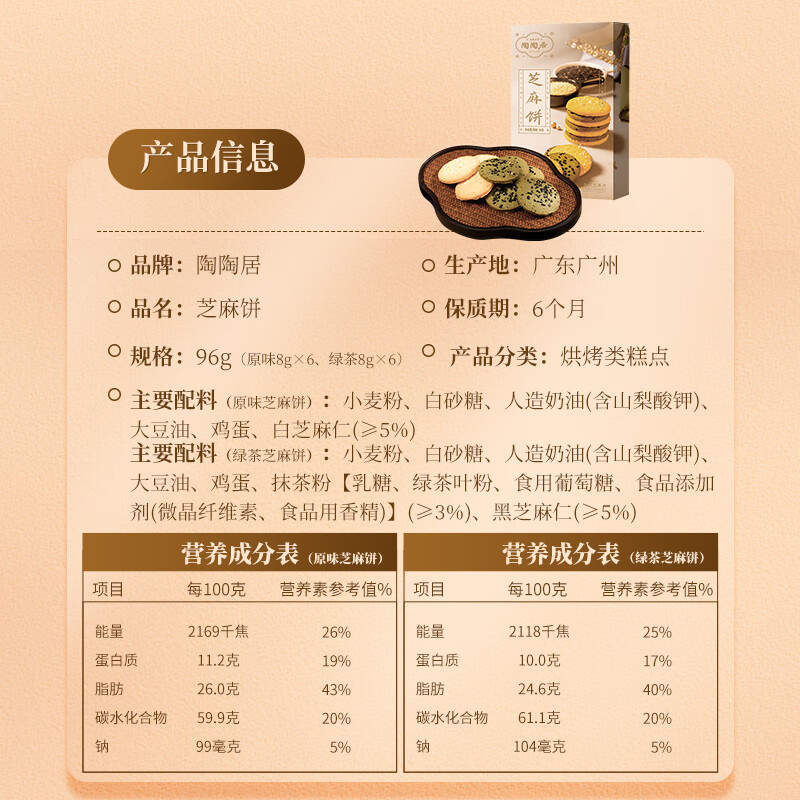 - 商品名称:陶陶居中式糕点 芝麻饼96g