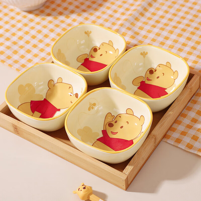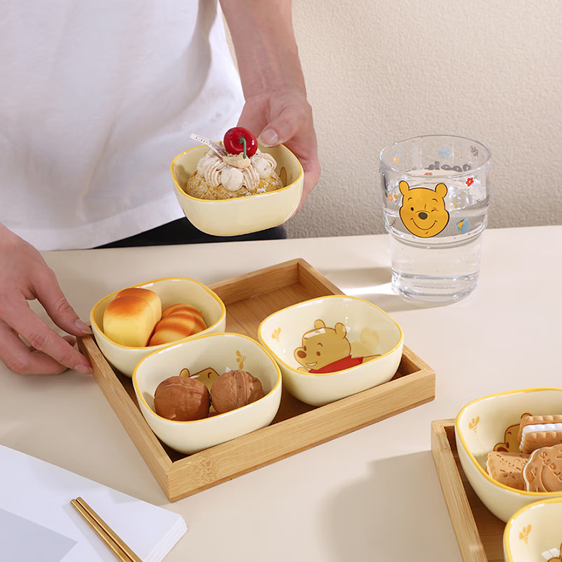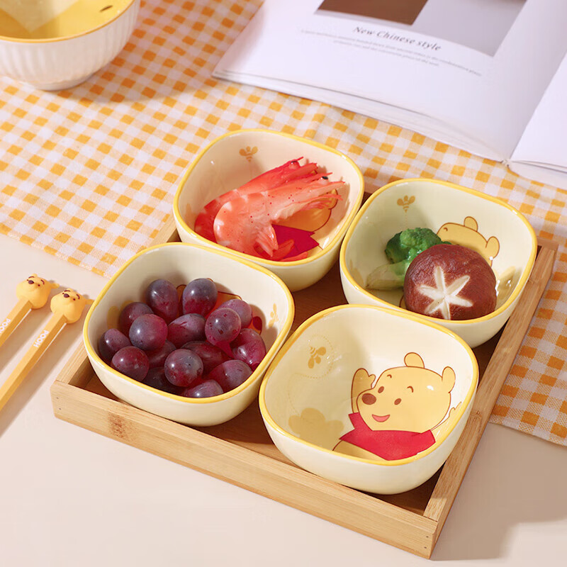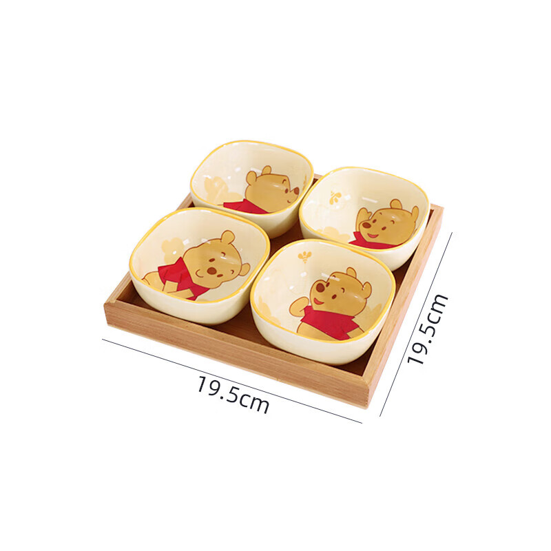 这款迪士尼正版的小食碟采用云朵维尼方碟设计,不仅外形可爱,还兼具实用性。四只一套,并配有托盘方便收纳和携带,非常适合家庭、宿舍或学校使用。