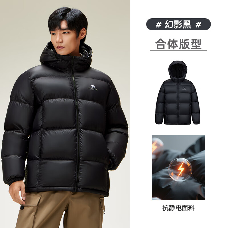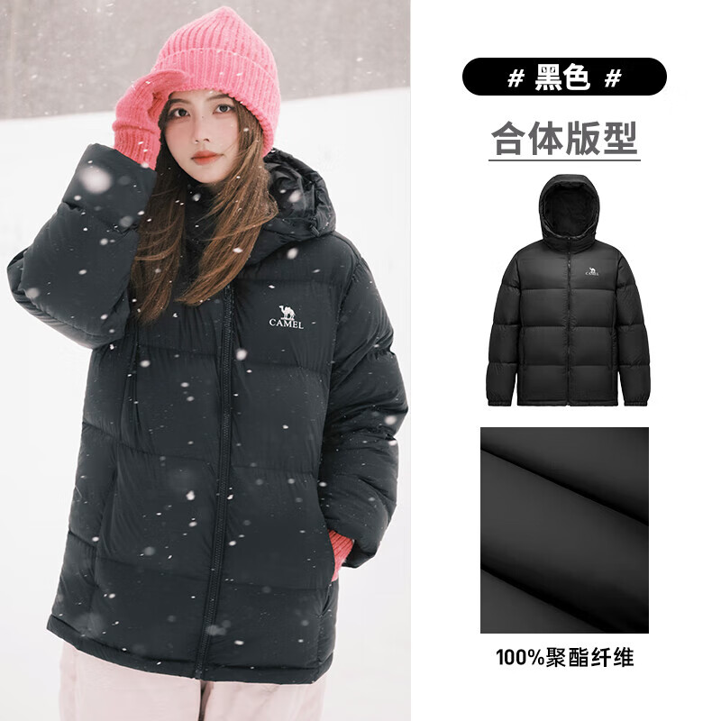 这款骆驼火山羽绒服是专为严冬打造的一款男女同款防寒外套,采用高品质鸭绒填充,具备出色的保暖性能。黑色经典设计不仅耐脏且时尚百搭。