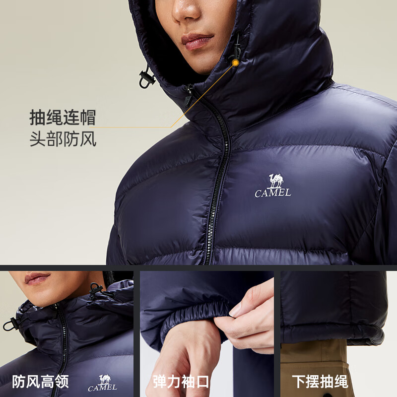 - 高品质鸭绒填充:选用高蓬松度的鸭绒作为保暖层,保证了羽绒服极佳的保温性能。