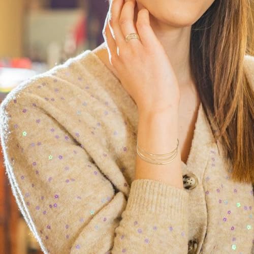 The Uonguon Ring and Bracelet Set offers a stunning, elegant look with its three-layer hollow cuff design. This set is perfect for adding a touch of sophistication to your outfit at proms or weddings.