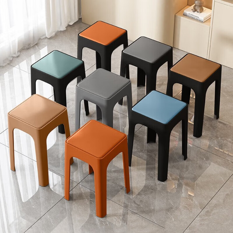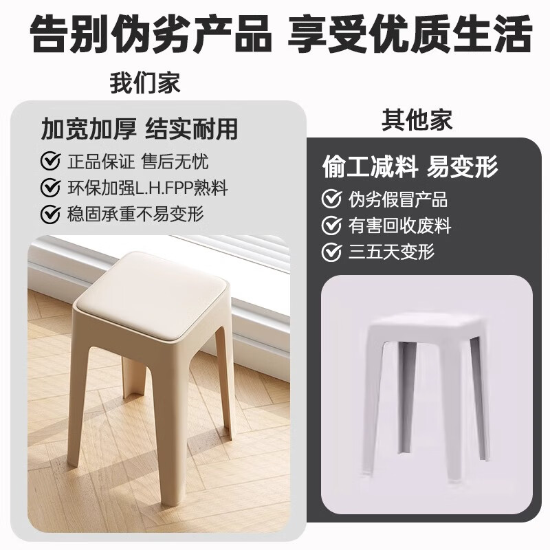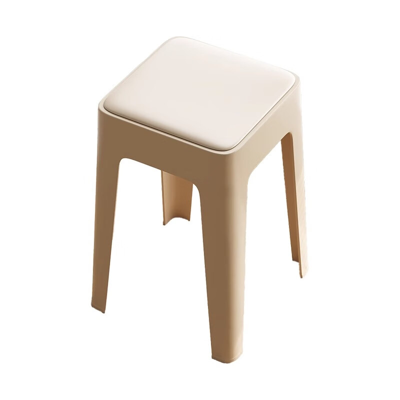 产品名称:万坤家用凳子塑料凳子加厚家用客厅高凳餐厅凳简约可摞叠特厚圆塑胶凳 奶咖色加厚软包款(四把装)